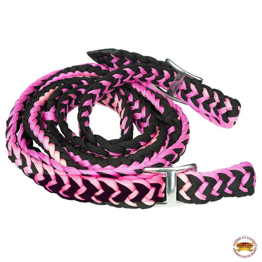 1" X 8Ft Hilason Braided Poly Barrel Horse Racing Reins Flat Grip Knots