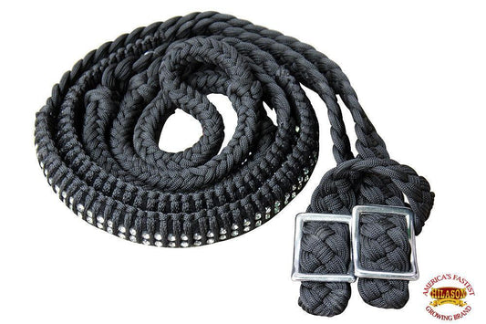 1" X 8Ft Hilason Braided Poly Horse Barrel Reins Flat Grip Knots Crystal