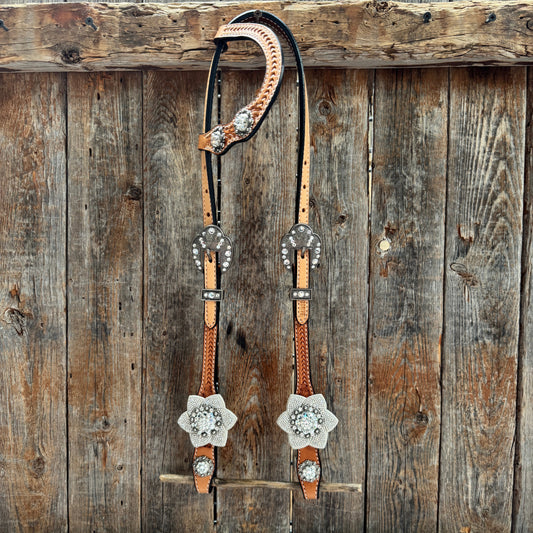Light Oil Basketweave Clear Browband/One Ear Tack Set #BBBC497