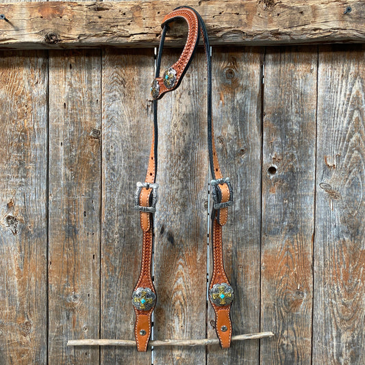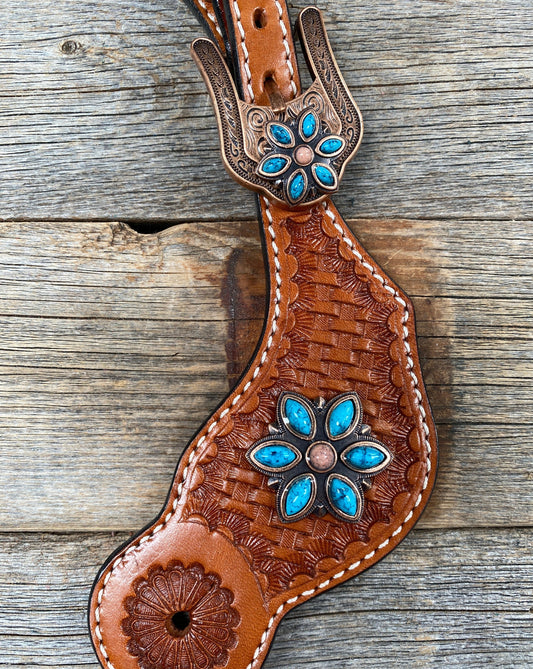 Light Oil Basketweave Copper and Turquoise Browband/One Ear Tack Set #BBBC625