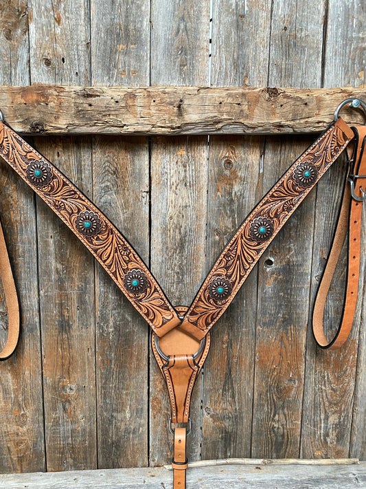 Light Oil Buckaroo Roper Flower Turquoise One Ear & Breastcollar Tack Set #OEBC459
