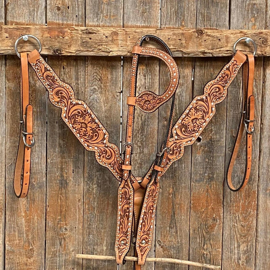 Light Oil Floral Fern, Clear Browband/One Ear Breastcollar Tack Set #BBBC677