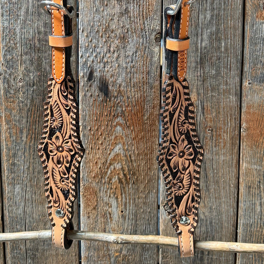 Light Oil Floral Whipstitch Browband Headstall / Bridle #24386