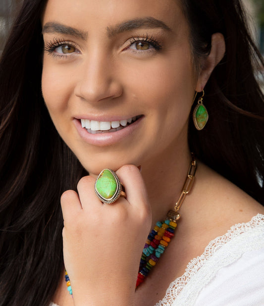 Lime Green Turquoise Boulder Golden Pendant Necklace