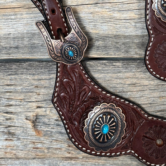 Medium Floral Spur Straps - Copper Western Conchos #SS117
