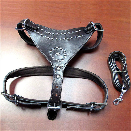 Medium Leather Dog Harness Black Genuine With Leash Hilason
