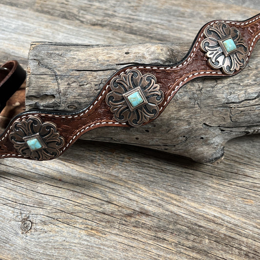 Medium Oil Basketweave AB Browband/One Ear Tack Set #BBBC672