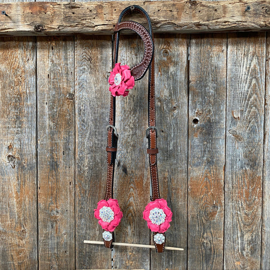 Medium Oil Basketweave Pink & AB One Ear Tack Set #OEBC591