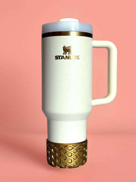 Metallic gold leather bit guards with " Kick the Dust Up"