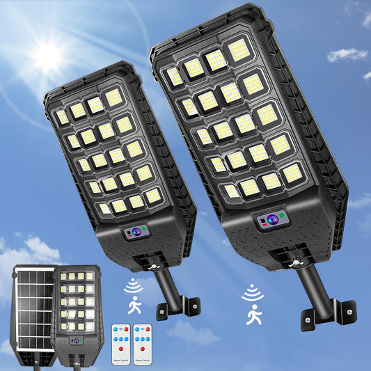 2 Pack 1500W Solar Motion Lights Outdoor, 400 LED Parking Lot Lights Outdoor, IP65 Solar Street Lights Outdoor Waterproof