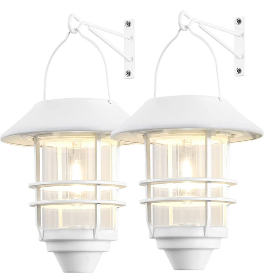 2 Pack SmartYard Solar Aluminum Wall Hanging Lanterns with Replaceable Bulb, 4 Solar Panels,Anti-Rust