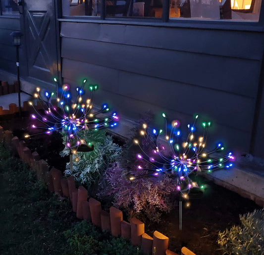 2 Pack Solar Garden Firework Lights Solar Powered String Light with 2 Lighting Modes Twinkling and Steady