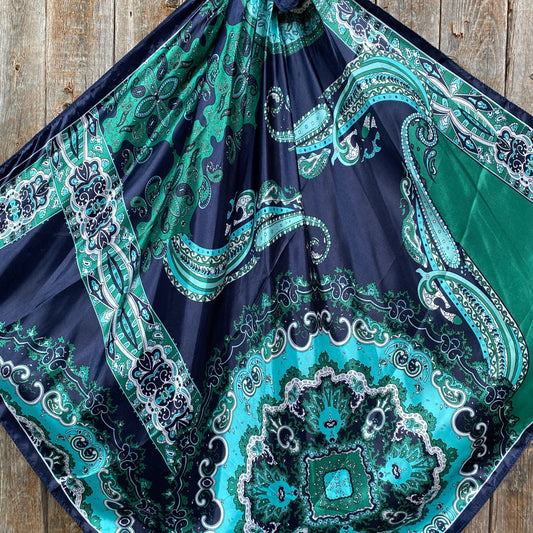 35X35" Blue and Green Waves Wild Rag / Scarf WR3357