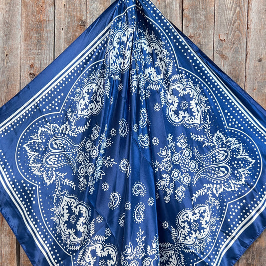 35X35" Blue & White Paisley Wild Rag / Scarf WR3403