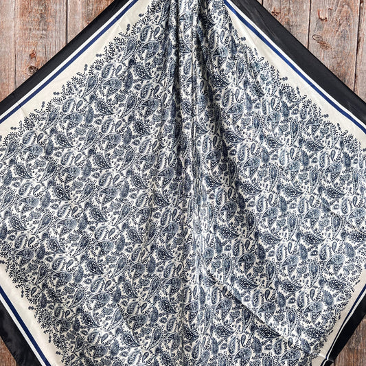 35X35" Blue and Cream Paisley Wild Rag / Scarf WR3408
