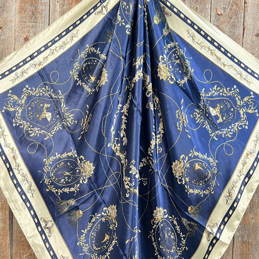 35X35" Blue Carriage Wild Rag / Scarf - Antique AB Slide WRC328A