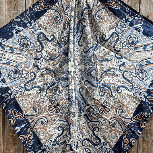 35X35" Blue, Cream and Tan Paisley Wild Rag / Scarf -W197B Slide WRC1002A