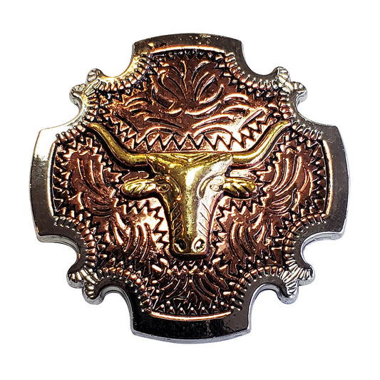 1 1/2" Hilason Western Horse Concho 3-Tone Finish Steer Head Brown