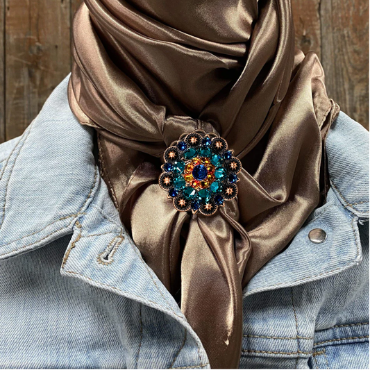 35X35" Solid Tan Wild Rag / Scarf WRS7 - Crystal Concho Wild Rag Slides - Assorted