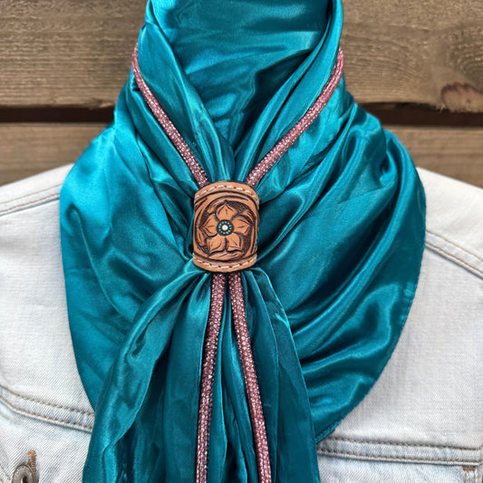 35X35" Solid Teal Wild Rag / Scarf - Leather Slide and Bolo Tie