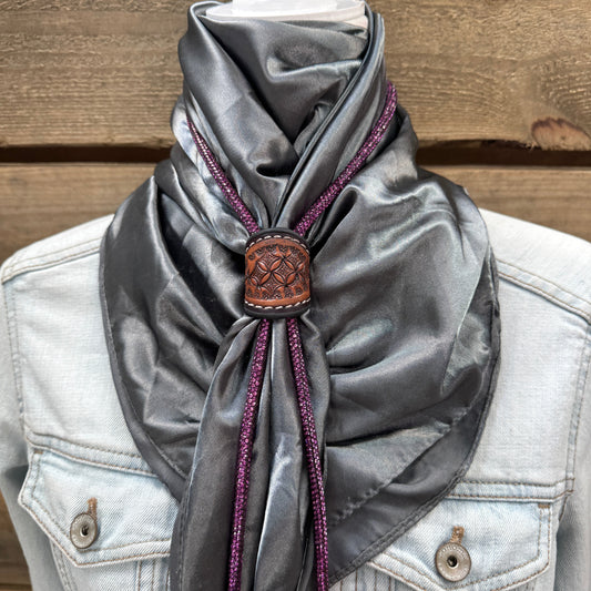 35X35" Solid Silver / Grey Wild Rag / Scarf - Leather Slide and Bolo Tie