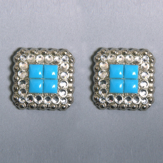 1 Pcs Hilason Turquoise Stone Clear Crystal Square Nickle Concho Saddle