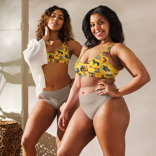 Yeehaw Vintage Cowboy Collage Mustard Bikini Top
