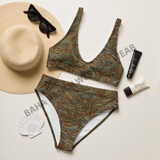 Yeehaw Turquoise Tooled Leather Print Bikini