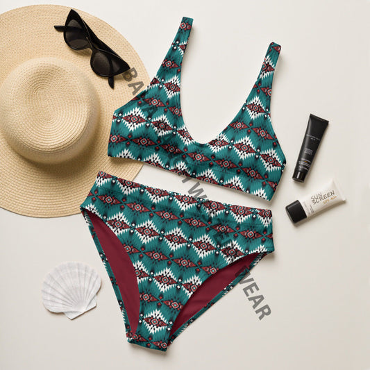 Yeehaw Turquoise Floral Leather Print Bikini Top
