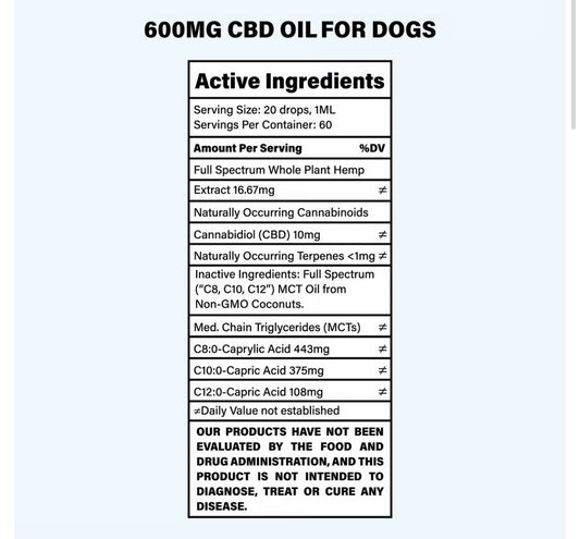 600MG CBD Oil for Dogs - 60ml Bottle