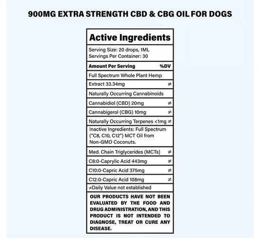 900MG Extra Strength 2:1 CBD & CBG Oil For Dogs - 30ml Bottle