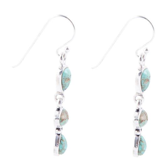 Linear Triple Stone Blue Turquoise and Sterling Silver Earrings