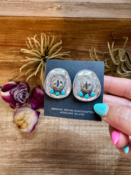 Cowboy Hat Stud Earrings with Kingman Turquoise – Sterling Silver – Native Made by Bobby Platero