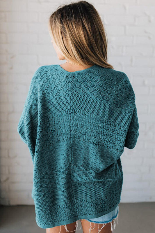 Lapis Mix Pattern Hollow Knit Open Front Cardigan
