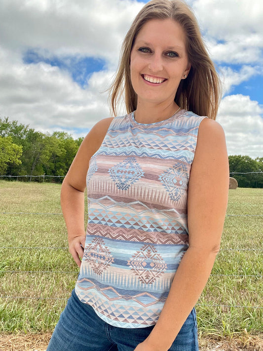 Baha Ranch Turquoise Cowgirl Retro Pop Western Tank Top