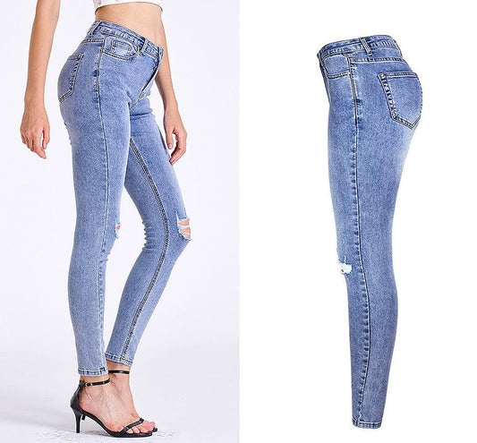 Essential Ripped Skinny Jeans – Stretch Slim Fit, Stone Wash Blue Denim, Street Style