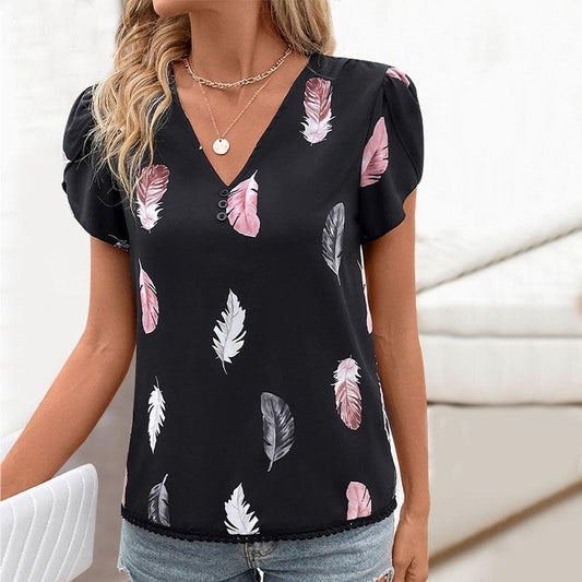Women's Spring Glitzy V-Neck Short Sleeved Marble Print Top
