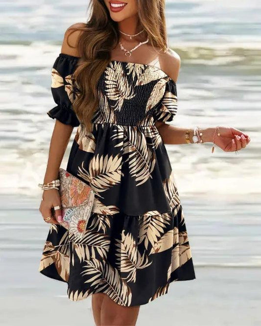 Boho Breeze Off-Shoulder Pleated Dress – Stylish Cowgirl Casual Wear