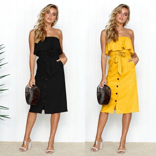 Summer Sun Strapless Button-Down Dress