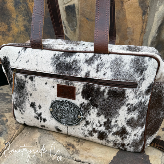 Vintage NFR Buckle Carry All Cowhide Duffle Travel Bag