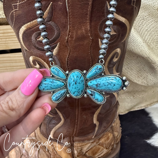 Checkered Turquoise & Black Statement Necklace