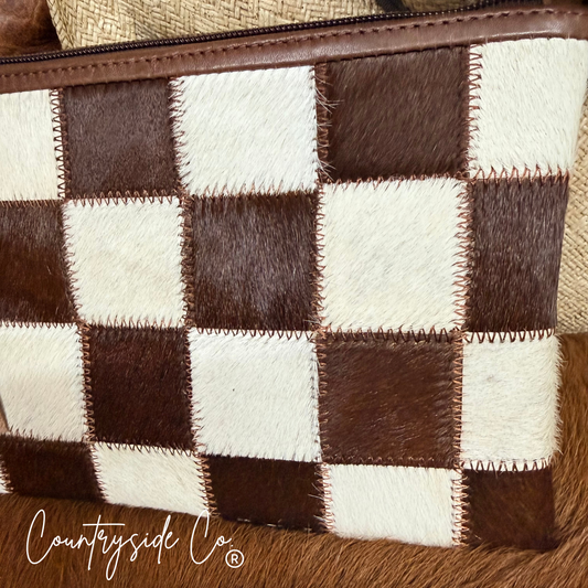 Tinsley Checkered Leather Cowhide Conceal Carry Tote, Computer Bag