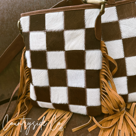 Rodeo Square Cowhide Checkered Conceal Carry Purse