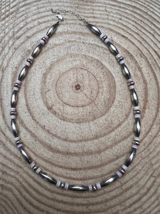 Sterling Torpedo Pearl Choker with Pink Conch - 14 inch + 3