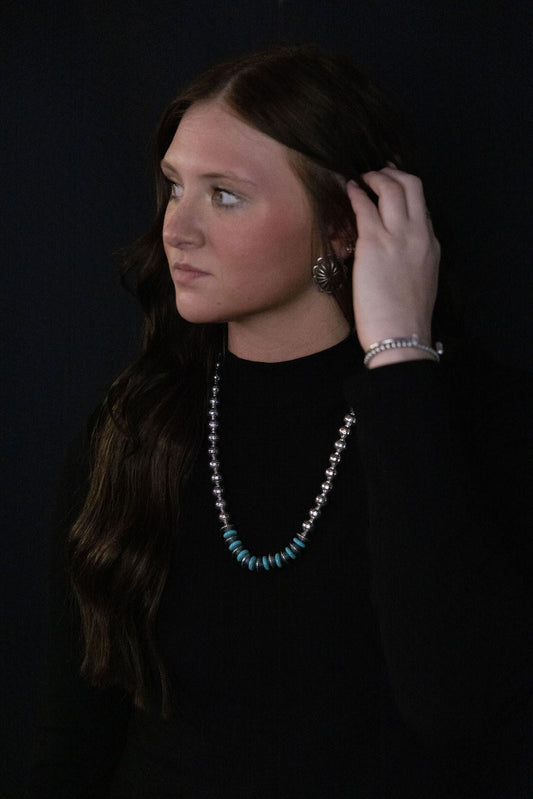 Turquoise with 3 mm Sterling Silver Pearls - 18 inch