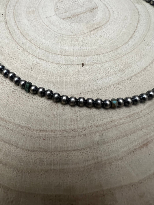 4mm Sterling Pearl and turquoise choker - 14 inch
