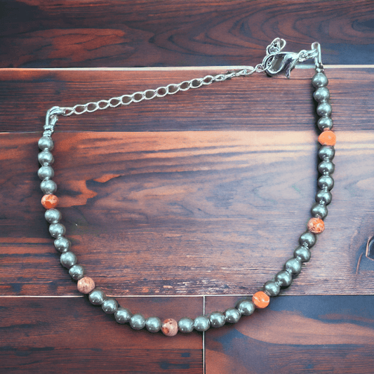 Sterling Melon & Turquoise Bead Choker - 14-inch