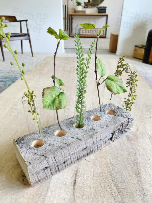 Reclaimed Wood and Glass Plant Propagation Vases