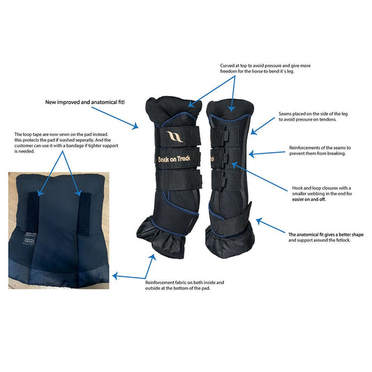 Back On Track Horse Leg Pair Royal Quick Wraps Deluxe Polyester Black Flexible Protective Boots