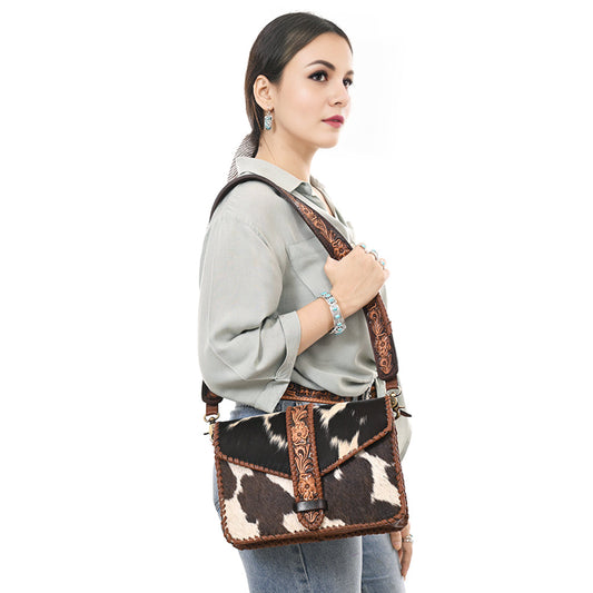 American Darling Hand Tooled Hair On Genuine Suede Leather Clutch Bag | Tooled Travel Jewelry Case
